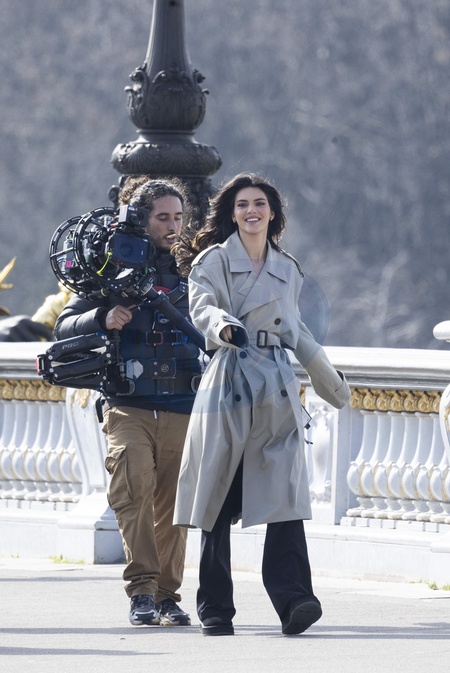 Exclusif - L'ambassadrice de l'Oréal Kendall Jenner continue de tourner une publicité pour l'Oréal sur le pont Alexandre III à Paris, France, le 8 mars 2024. No Web pour la Belgique et la Suisse Exclusive - For Gezrmany Call For Price - L'Oréal Paris ambassador Kendall Jenner continues to shoot an advertisement for L'Oréal on the Alexandre III bridge in Paris, France, on March 8, 2024.