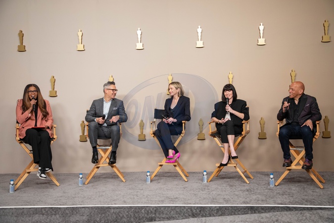 From Left: Moderator: Awards Editor for Rotten Tomatoes, Jacqueline Coley, Executive Producer and Showrunner Raj Kapoor, Executive Producer Molly McNearney, Executive Producer Katy Mullan and Music Director Ricky Minor at a press conference for the 96th Oscars on Wednesday, March 6, 2024. The 96th Oscars will air on Sunday, March 10, 2024 live on ABC., Credit:Al Seib / Avalon