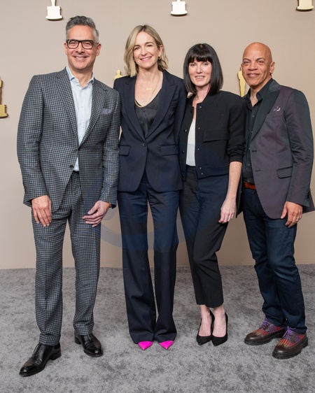 From Left: Executive Producer and Showrunner Raj Kapoor, Executive Producer Molly McNearney, Executive Producer Katy Mullan, and Music Director Ricky Minor at a press conference for the 96th Oscars on Wednesday, March 6, 2024. The 96th Oscars will air on Sunday, March 10, 2024 live on ABC., Credit:Al Seib / Avalon