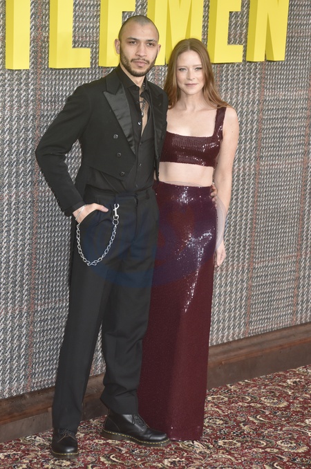 Jasper Ryan-Cater and Cecile Sinclair at the UK Series Global Premiere of "The Gentlemen" at Theatre Royal Drury Lane, Catherine Street, London WC2B 5JF on Tuesday 5th March 2024., Credit:Sue Andrews / Avalon