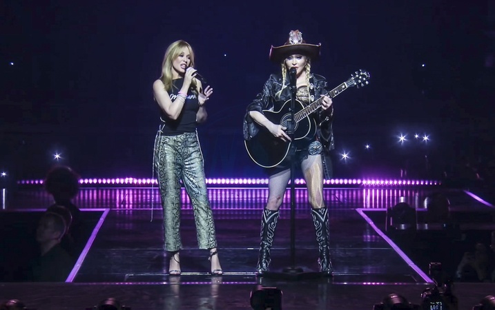 Screenshot of Kylie Minogue, latest post on social media, 9th March 2024.Quote:"MADONNA It's been a long time coming!!! LOVED being with you!!!! Celebration Tour AND it is now International Women's Day …. THANK YOU and LOVE LOVE LOVE", Credit:B4859 / Avalon