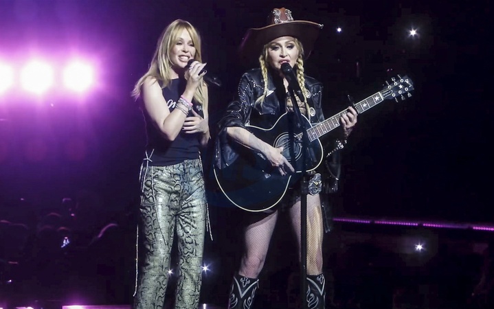 Screenshot of Kylie Minogue, latest post on social media, 9th March 2024.Quote:"MADONNA It's been a long time coming!!! LOVED being with you!!!! Celebration Tour AND it is now International Women's Day …. THANK YOU and LOVE LOVE LOVE", Credit:B4859 / Avalon