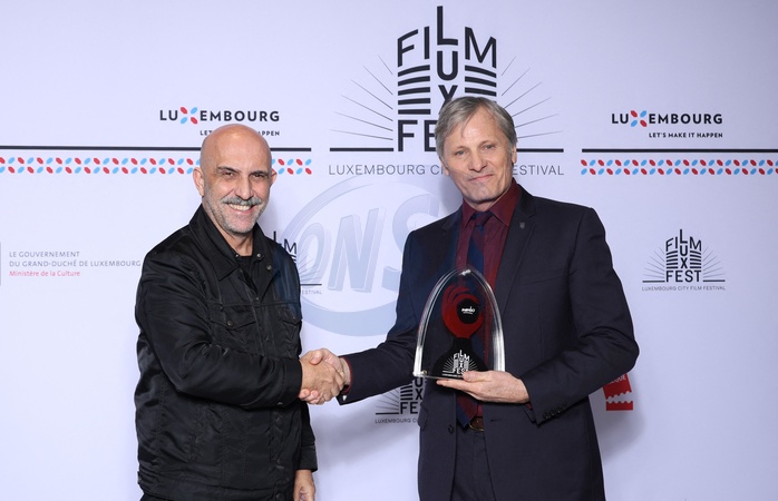 Gaspard Noé et Viggo Mortensen (prix pour l'ensemble de sa carrière) lors de la clôture du festival du film du Luxembourg (Lux Film Fest) au Luxembourg le 9 mars 2024. © Denis Guignebourg / Bestimage Closing of the Luxembourg Film Festival (Lux Film Fest) in Luxembourg on 9 March 2024.
