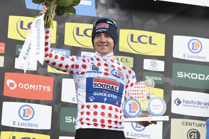 Remco Evenepoel (Soudal Quick-Step) remporte le classement général de meilleur grimpeur. © William Cannarella / Panoramic / Bestimage The American Matteo Jorgenson wins the 82nd edition of Paris-Nice and the Belgian Remco Evenepoel the last stage, on March 10th, 2024.