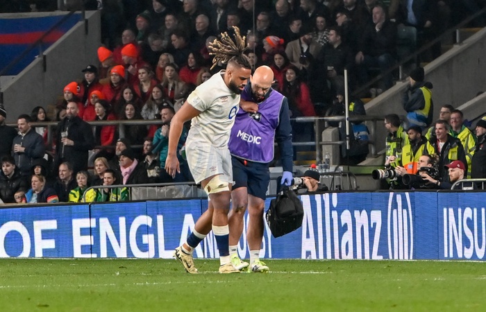 Chandler Cunningham-South of England leaves the pitch injured during the Guinness Six Nations 2024 match between England and Ireland at Twickenham Stadium on March 9, 2024 in London, England, Credit:Jules Annan / Avalon