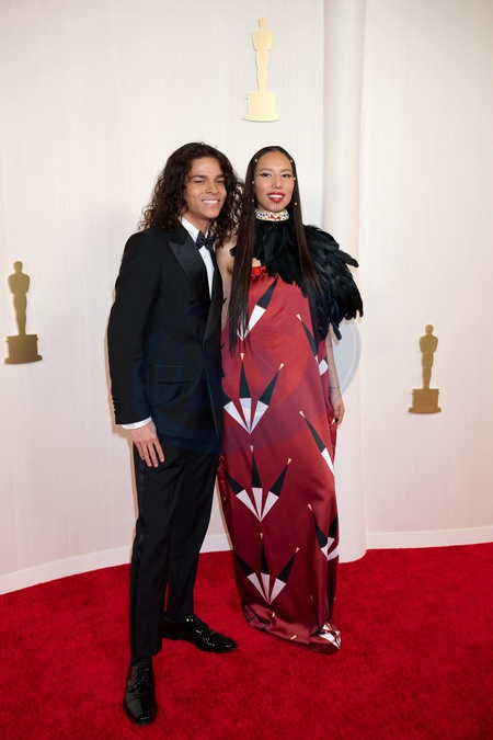 D'Pharaoh Woon-A-Tai and Quannah Chasinghorse arrive on the red carpet of the 96th Oscars® at the Dolby® Theatre at Ovation Hollywood on Sunday, March 10, 2024., Credit:JKP / Avalon