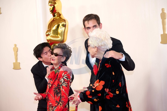 Oscar® nominees Sean Wang (L) and Sam Davis (2nd from R) arrive with Zhang Li Hua (2nd from L) and Yi Yan Fuei (R) on the red carpet of the 96th Oscars® at the Dolby® Theatre at Ovation Hollywood on Sunday, March 10, 2024., Credit:SRS / Avalon