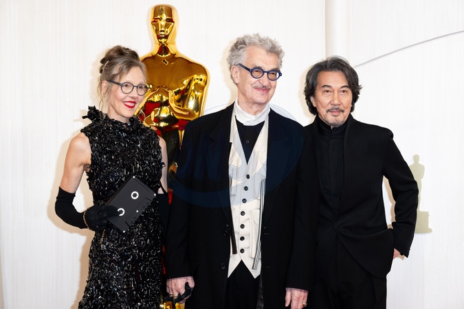 Oscar® nominee Wim Wenders with (L-R) Donata Wenders and Kōji Yakusho arrive on the red carpet of the 96th Oscars® at the Dolby® Theatre at Ovation Hollywood on Sunday, March 10, 2024., Credit:Nick Agro / Avalon