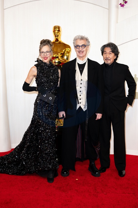 Oscar® nominee Wim Wenders with (L-R) Donata Wenders and Kōji Yakusho arrive on the red carpet of the 96th Oscars® at the Dolby® Theatre at Ovation Hollywood on Sunday, March 10, 2024., Credit:MS / Avalon