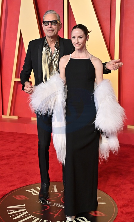 Jeff Goldblum and Emilie Livingston arriving at the Vanity Fair Oscar Party held at the Wallis Annenberg Center for the Performing Arts on March 10, 2024 in Beverly Hills, CA.© OConnor-Arroyo / AFF-USA.com