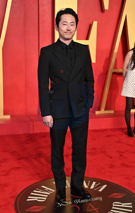 Steven Yeun arriving at the Vanity Fair Oscar Party held at the Wallis Annenberg Center for the Performing Arts on March 10, 2024 in Beverly Hills, CA.© OConnor-Arroyo / AFF-USA.com