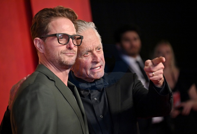Cameron Douglas and Michael Douglas arriving at the Vanity Fair Oscar Party held at the Wallis Annenberg Center for the Performing Arts on March 10, 2024 in Beverly Hills, CA.© OConnor-Arroyo / AFF-USA.com