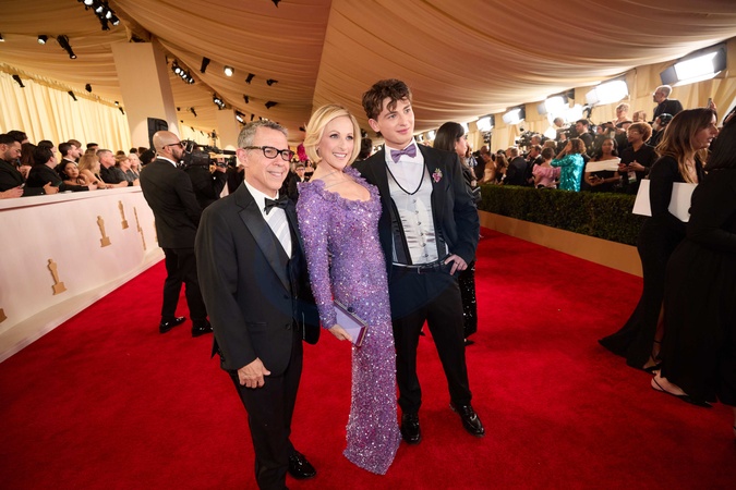 Jack Jason, Marlee Matlin, and Tyler Daniel Grandalski arrive on the red carpet of the 96th Oscars® at the Dolby® Theatre at Ovation Hollywood on Sunday, March 10, 2024., Credit:MS / Avalon