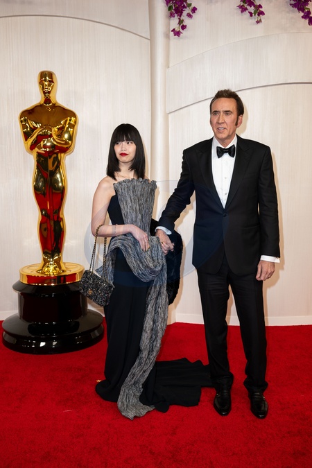 Riko Shibata and Nicolas Cage arrive on the red carpet of the 96th Oscars® at the Dolby® Theatre at Ovation Hollywood on Sunday, March 10, 2024., Credit:JKP / Avalon
