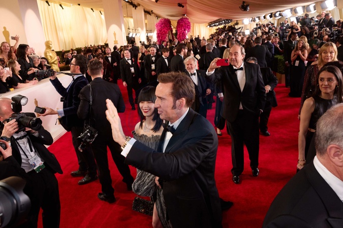 Riko Shibata and Nicolas Cage arrive on the red carpet of the 96th Oscars® at the Dolby® Theatre at Ovation Hollywood on Sunday, March 10, 2024., Credit:SRS / Avalon
