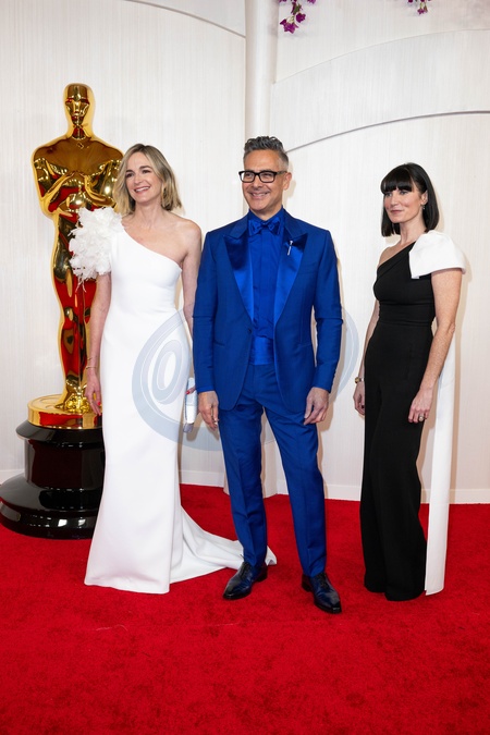 Molly McNearney, Raj Kapoor, and Katy Mullan arrive on the red carpet of the 96th Oscars® at the Dolby® Theatre at Ovation Hollywood on Sunday, March 10, 2024., Credit:SRS / Avalon