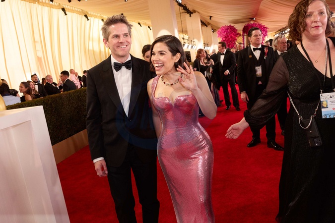 Ryan Piers Williams and Oscar® nominee America Ferrera arrive on the red carpet of the 96th Oscars® at the Dolby® Theatre at Ovation Hollywood on Sunday, March 10, 2024., Credit:Warrick Page ©A.M.P.A.S. / Avalon