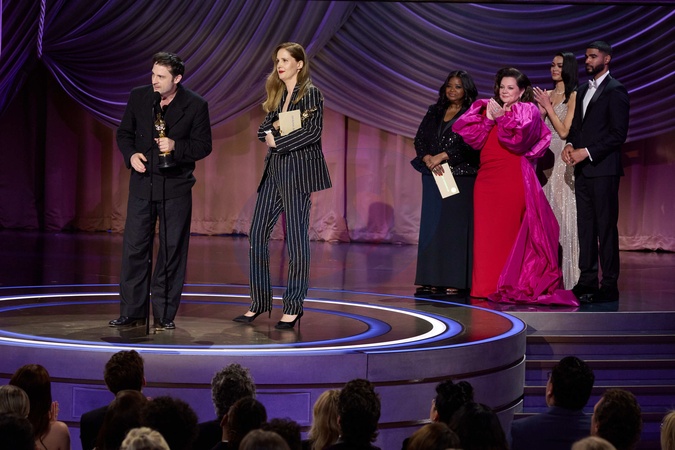 Arthur Harari and Justine Triet accept the Oscar® for Original Screenplay during the live ABC telecast of the 96th Oscars® at the Dolby® Theatre at Ovation Hollywood on Sunday, March 10, 2024., Credit:Avalon.red / Avalon