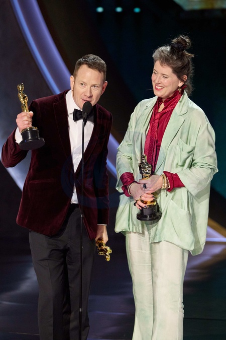 James Price and Shona Heath accept the Oscar® for Production Design during the live ABC telecast of the 96th Oscars® at the Dolby® Theatre at Ovation Hollywood on Sunday, March 10, 2024., Credit:Avalon.red / Avalon