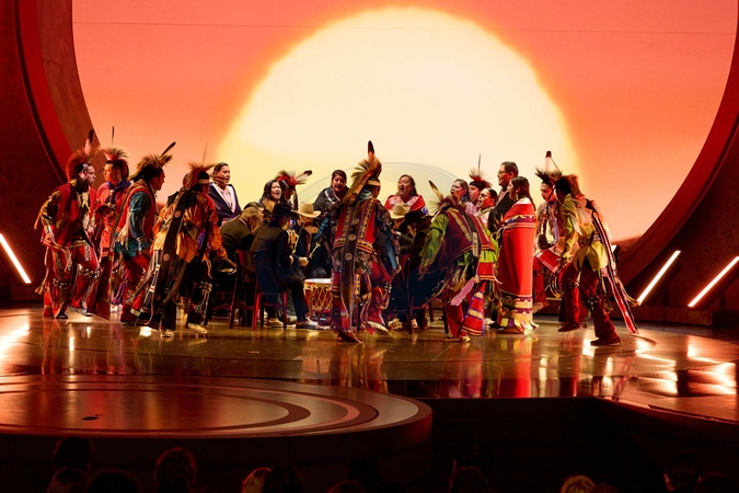 The Osage Tribal Singers and Dancers perform onstage during the live ABC telecast of the 96th Oscars® at the Dolby® Theatre at Ovation Hollywood on Sunday, March 10, 2024., Credit:Avalon.red / Avalon