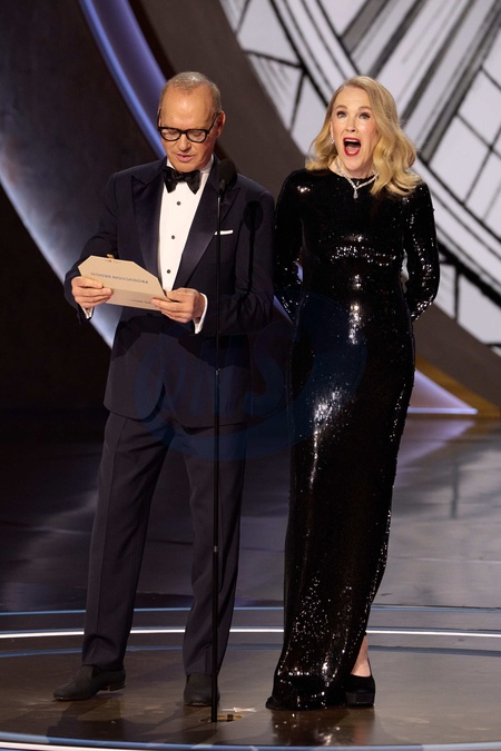 Michael Keaton and Catherine O'Hara present the Oscar® for Production Design during the live ABC telecast of the 96th Oscars® at the Dolby® Theatre at Ovation Hollywood on Sunday, March 10, 2024., Credit:Avalon.red / Avalon