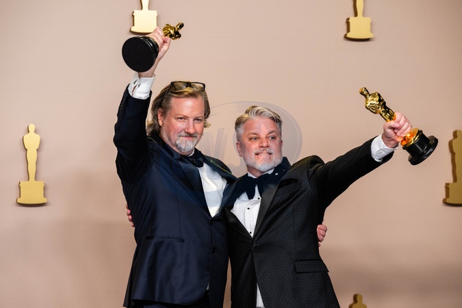 Dave Mullins and Brad Booker pose backstage with the Oscar® for Animated Short Film during the live ABC telecast of the 96th Oscars® at Dolby® Theatre at Ovation Hollywood on Sunday, March 10, 2024., Credit:SRS / Avalon