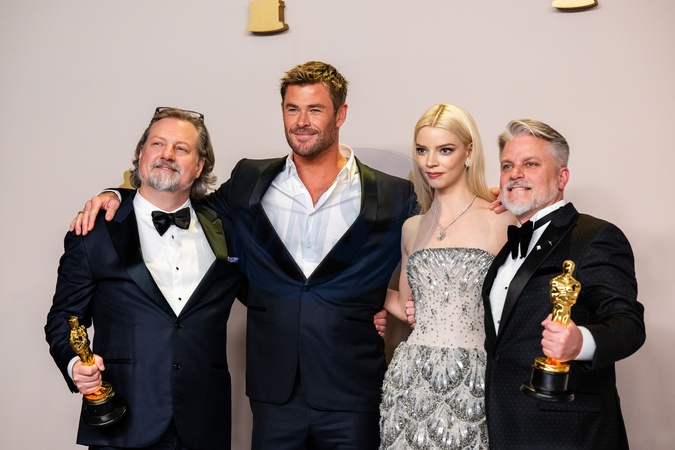 Dave Mullins and Brad Booker pose backstage with the Oscar® for Animated Short Film and Chris Hemsworth and Anya Taylor-Joy during the live ABC telecast of the 96th Oscars® at Dolby® Theatre at Ovation Hollywood on Sunday, March 10, 2024., Credit:SRS / Avalon
