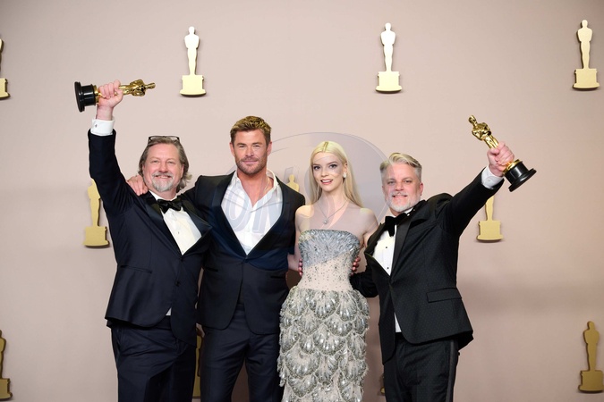 Dave Mullins, Chris Hemsworth, Ana Taylor-Joy and Brad Booker pose backstage with the Oscar® for Animated Short Film during the live ABC telecast of the 96th Oscars® at Dolby® Theatre at Ovation Hollywood on Sunday, March 10, 2024., Credit:sb / Avalon
