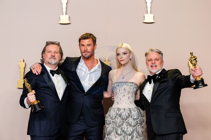 Dave Mullins and Brad Booker pose backstage with the Oscar® for Animated Short Film and Chris Hemsworth and Anya Taylor-Joy during the live ABC telecast of the 96th Oscars® at Dolby® Theatre at Ovation Hollywood on Sunday, March 10, 2024., Credit:SRS / Avalon