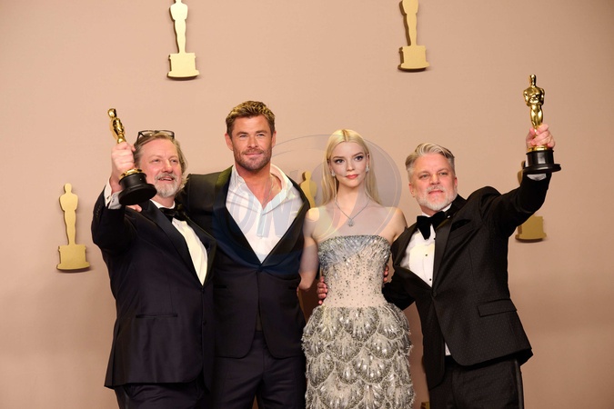 Dave Mullins, Chris Hemsworth, Anya Taylor-Joy, and Brad Booker pose backstage with the Oscar® for Animated Short Film during the live ABC telecast of the 96th Oscars® at Dolby® Theatre at Ovation Hollywood on Sunday, March 10, 2024., Credit:AL / Avalon