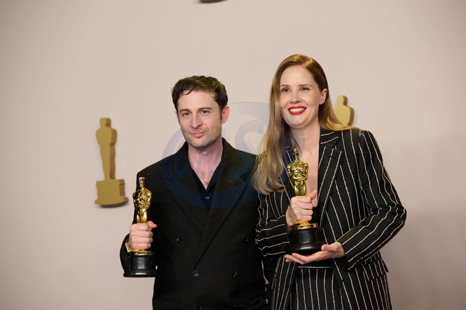 James Price and Shoana Heath pose backstage with the Oscar® for Production Design during the live ABC telecast of the 96th Oscars® at the Dolby® Theatre at Ovation Hollywood on Sunday, March 10, 2024., Credit:sb / Avalon