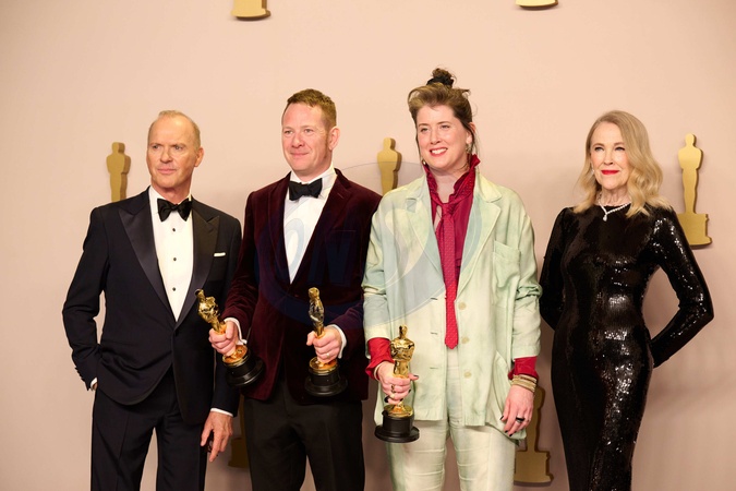 Kevin Costner, James Price, Shoana Heath and Catherine O'Hara pose backstage with the Oscar® for Production Design during the live ABC telecast of the 96th Oscars® at the Dolby® Theatre at Ovation Hollywood on Sunday, March 10, 2024., Credit:sb / Avalon