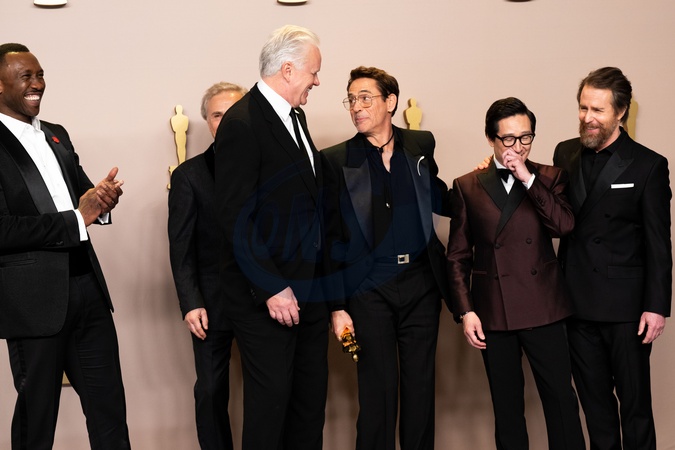 Robert Downey, Jr. poses backstage with the Oscar® for Actor in a Supporting Role and Mahershalah Ali, Tim Robbins, Ke Huy Quan, and Sam Rockwell during the live ABC telecast of the 96th Oscars® at Dolby® Theatre at Ovation Hollywood on Sunday, March 10, 2024., Credit:SI / Avalon