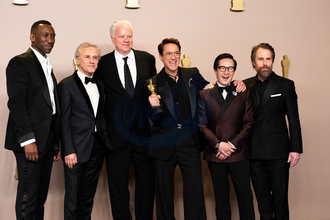 Robert Downey, Jr. poses backstage with the Oscar® for Actor in a Supporting Role and Mahershalah Ali, Christoph Waltz, Tim Robbins, Ke Huy Quan, and Sam Rockwell during the live ABC telecast of the 96th Oscars® at Dolby® Theatre at Ovation Hollywood on Sunday, March 10, 2024., Credit:SI / Avalon