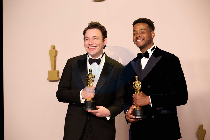 Ben Proudfoot and Kris Bowers pose backstage with the Oscar® for Documentary Short Film during the live ABC telecast of the 96th Oscars® at Dolby® Theatre at Ovation Hollywood on Sunday, March 10, 2024., Credit:MS / Avalon