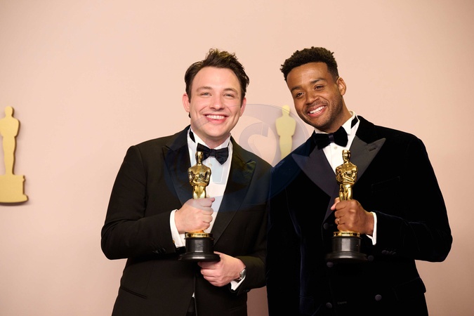 Ben Proudfoot and Kris Bowers pose backstage with the Oscar® for Documentary Short Film during the live ABC telecast of the 96th Oscars® at Dolby® Theatre at Ovation Hollywood on Sunday, March 10, 2024., Credit:MS / Avalon