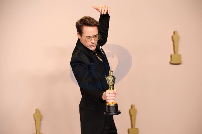 Robert Downey Jr. poses with his Oscar backstage at the 96th Oscars® at the Dolby® Theatre at Ovation Hollywood on Sunday, March 10, 2024., Credit:Michael Baker / Avalon