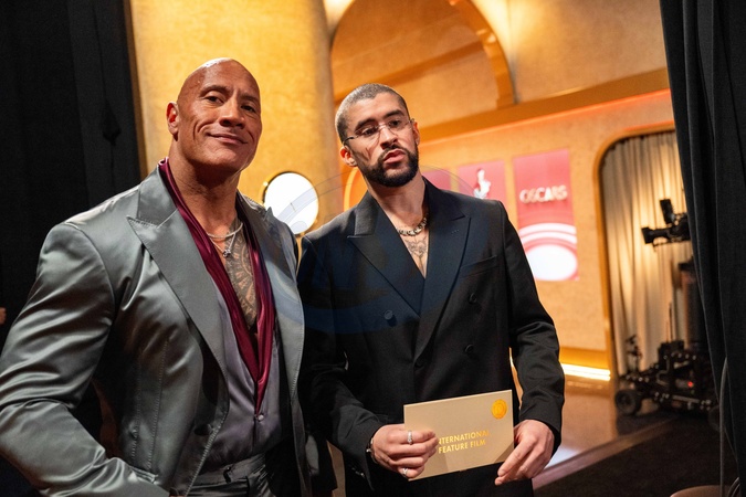 Dwayne Johnson and Bad Bunny pose backstage during the live ABC telecast of the 96th Oscars® at the Dolby® Theatre at Ovation Hollywood on Sunday, March 10, 2024., Credit:SI / Avalon