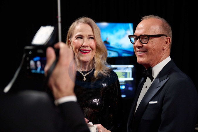 Michael Keaton and Catherine O'Hara backstage before they present the Oscar® for Makeup and Hairstyling during the live ABC telecast of the 96th Oscars® at the Dolby® Theatre at Ovation Hollywood on Sunday, March 10, 2024., Credit:MS / Avalon