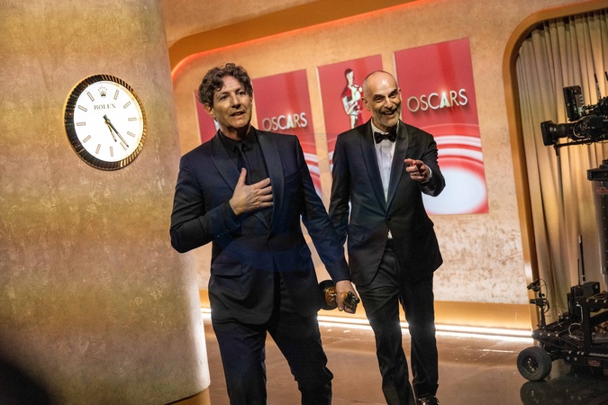 Jonathan Glazer and James Wilson pose backstage with the Oscar® for International Feature FIlm during the live ABC telecast of the 96th Oscars® at Dolby® Theatre at Ovation Hollywood on Sunday, March 10, 2024., Credit:SI / Avalon