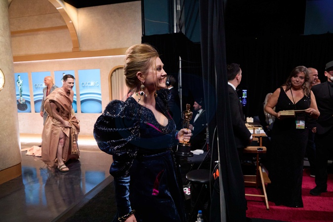 Holly Waddington backstage with the Oscar® for Costume Design during the live ABC telecast of the 96th Oscars® at Dolby® Theatre at Ovation Hollywood on Sunday, March 10, 2024., Credit:sb / Avalon