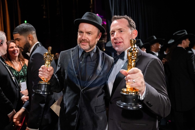 Tarn Willers and Johnnie Burn pose backstage with the Oscar® for Sound during the live ABC telecast of the 96th Oscars® at Dolby® Theatre at Ovation Hollywood on Sunday, March 10, 2024., Credit:SI / Avalon
