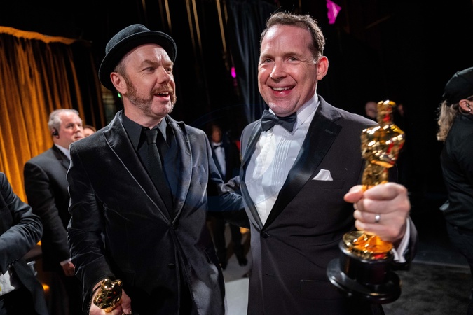 Tarn Willers and Johnnie Burn pose backstage with the Oscar® for Sound during the live ABC telecast of the 96th Oscars® at Dolby® Theatre at Ovation Hollywood on Sunday, March 10, 2024., Credit:SI / Avalon