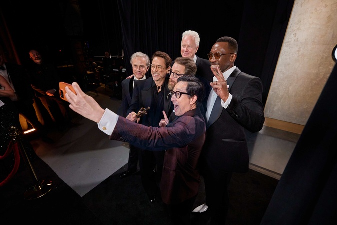 Sam Rockwell, Tim Robbins, Ke Huy Quan, Christoph Waltz, Mahershala Ali and Robert Downey, Jr. pose backstage with the Oscar® for Actor in a Supporting Role during the live ABC telecast of the 96th Oscars® at Dolby® Theatre at Ovation Hollywood on Sunday, March 10, 2024., Credit:Al Seib / Avalon