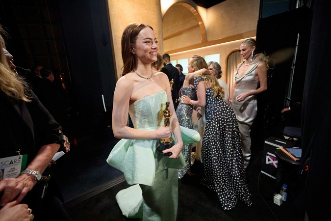 Emma Stone backstage with the Oscar® for Actress in a Leading Role during the live ABC telecast of the 96th Oscars® at Dolby® Theatre at Ovation Hollywood on Sunday, March 10, 2024., Credit:sb / Avalon