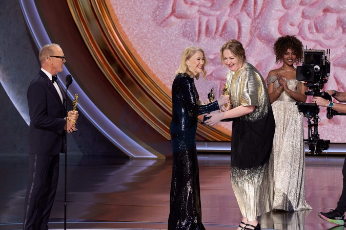 Michael Keaton and Catherine O'Hara present the Oscar® for Makeup and Hairstyling to Mark Coulier, Nadia Stacey and Josh Weston during the live ABC telecast of the 96th Oscars® at the Dolby® Theatre at Ovation Hollywood on Sunday, March 10, 2024., Credit:Avalon.red / Avalon