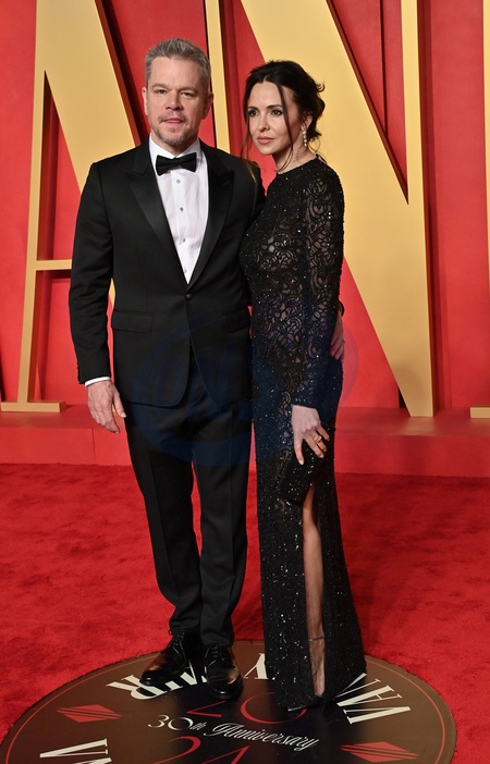 Matt Damon and Luciana Barroso arriving at the Vanity Fair Oscar Party held at the Wallis Annenberg Center for the Performing Arts on March 10, 2024 in Beverly Hills, CA.© OConnor-Arroyo / AFF-USA.com