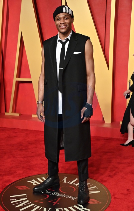 Russell Westbrook arriving at the Vanity Fair Oscar Party held at the Wallis Annenberg Center for the Performing Arts on March 10, 2024 in Beverly Hills, CA.© OConnor-Arroyo / AFF-USA.com