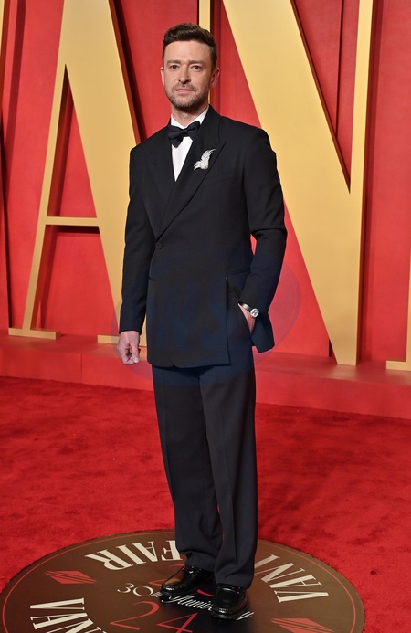 Justin Timberlake arriving at the Vanity Fair Oscar Party held at the Wallis Annenberg Center for the Performing Arts on March 10, 2024 in Beverly Hills, CA.© OConnor-Arroyo / AFF-USA.com