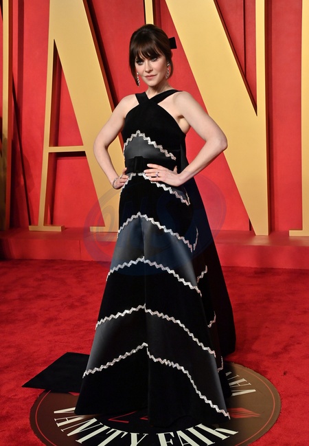 Zooey Deschanel arriving at the Vanity Fair Oscar Party held at the Wallis Annenberg Center for the Performing Arts on March 10, 2024 in Beverly Hills, CA.© OConnor-Arroyo / AFF-USA.com